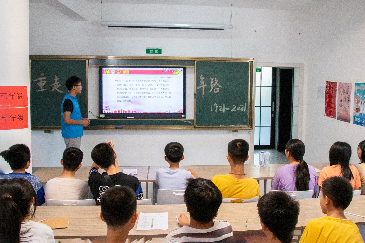 为了让党史学习教育走进留守儿童课堂,7月15日下午,bevitor伟德国际1946暑期“三下乡”社会实践团队带来一堂以“学党史、强信念”为主题的党史宣讲课。志愿者龙子尧邀请夏昭炎教授为孩子们讲述党史,引导他们走近党、热爱党、拥护党。