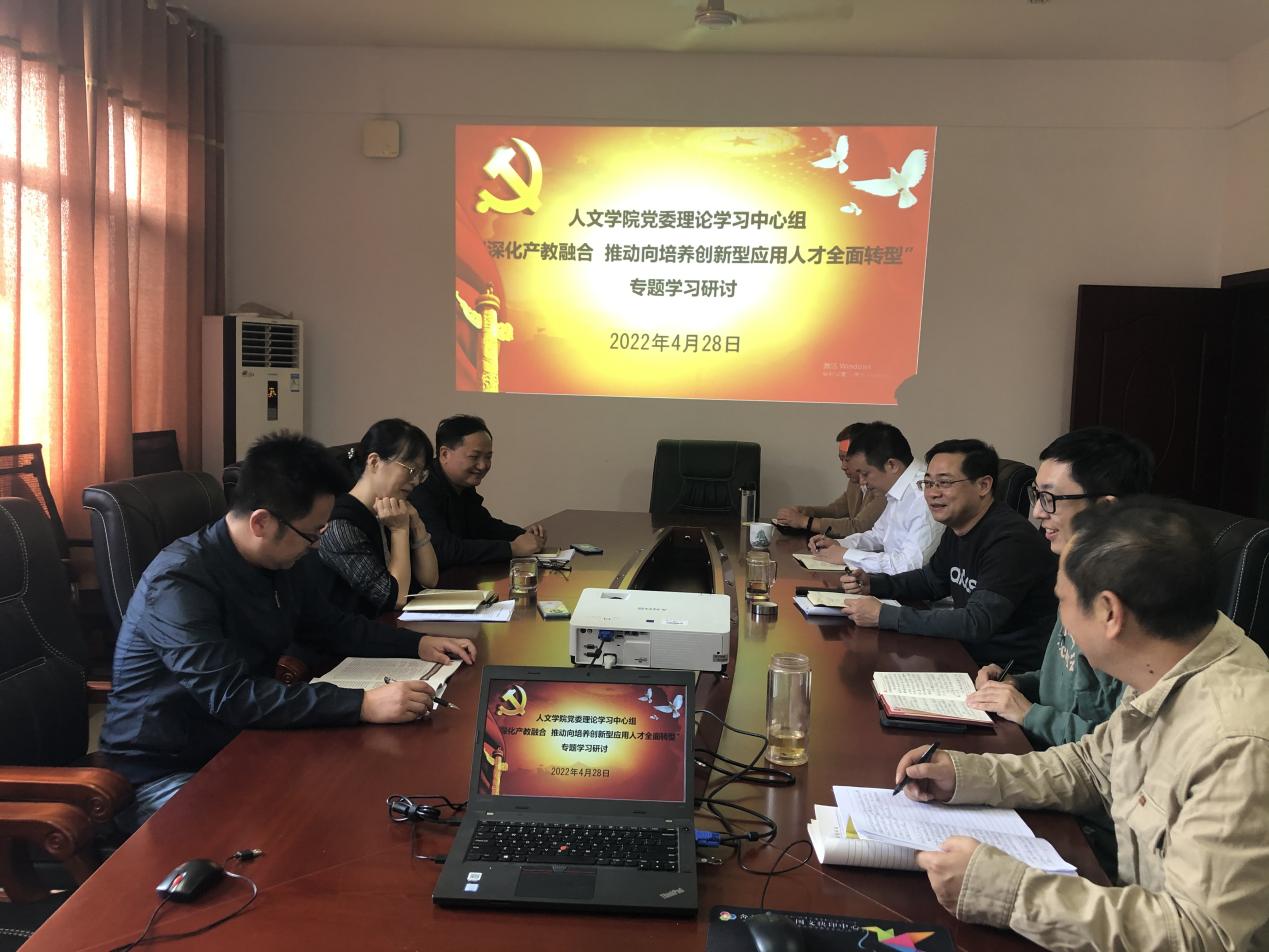 2022年4月28日,bevitor伟德国际1946公司党委理论学习中心组在立言楼B505室开展“深化产教融合 推动向培养创新型应用人才全面转型”专题集中学习,集中学习由曾志东书记主持,全体党委委员和党政办负责同志参加了本次集中学习。