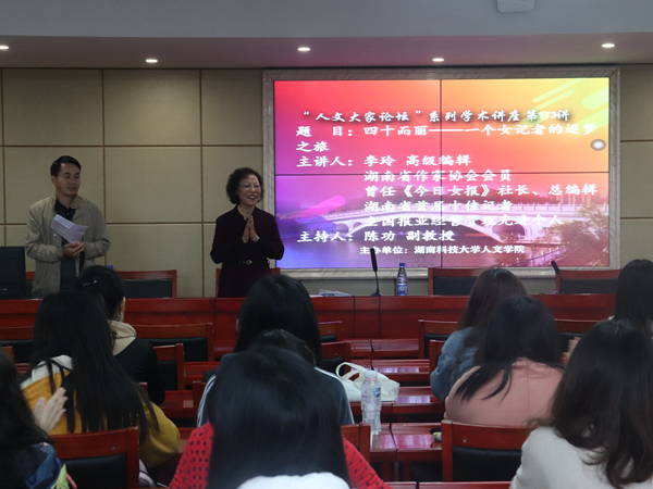 成为一名成功的新闻人应该具备怎样的精神?10月16日下午,《今日女报》社前社长、高级编辑李玲做客公司人文大家讲坛,在立言楼B4-1会议室做了一场题为“四十而丽——一个女记者的逐梦之旅”的讲座。李玲结合自己经历解答了成为成功新闻人的精神素质——“四要”。