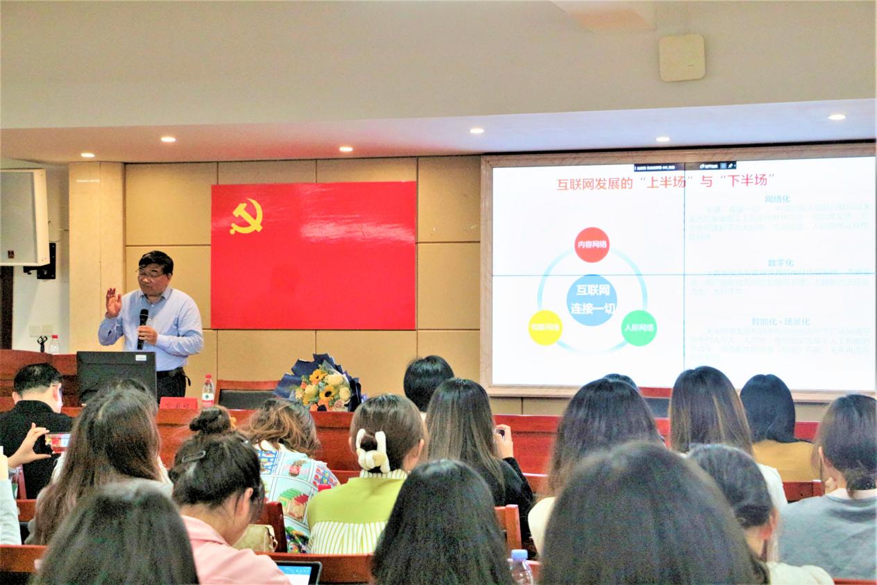 4月14日,教育部长江学者特聘教授、第七届国务院学位委员会新闻传播学学科评议组成员、北京师范大学新闻传播公司学术委员会主任、中国新闻史学会传媒经济与管理专业委员会理事长喻国明教授应邀来校,为广大师生作了“元宇宙、AIGC与传播革命”的学术讲座。讲座由bevitor伟德国际1946副经理袁星洁主持。