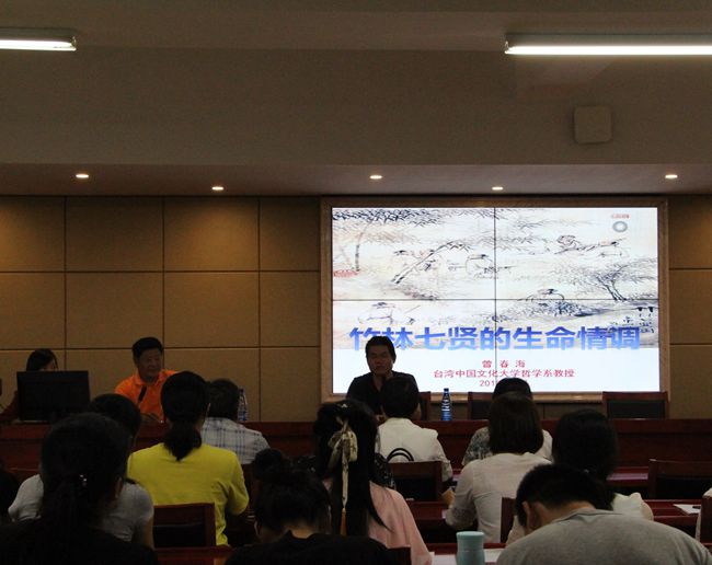 9月14日晚,公司邀请台湾中国文化大学哲学系教授曾春海于立言楼B4-1举行以“竹林七贤的生命情调”为主题的学术讲座。讲座由张晚林教授主持,颜中军、朱学恩、陈芷烨、王霞等老师以及16级哲学、17级思想政治教育1班、3班员工到场聆听。