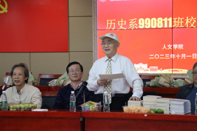 杨鹏程老教授对座谈会进行总结,他用历史故事展开阐述,还是如以往那般幽默诙谐。他谈到,历史是各行职业的基础,大家都应面对历史,学习历史,尊重历史,用好历史。最后,历史990811班班主任代表各位老师向各位员工表示思念以及真挚祝愿。